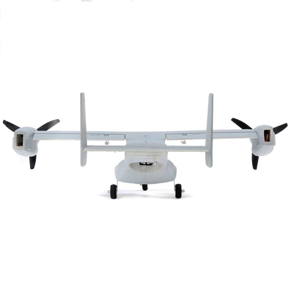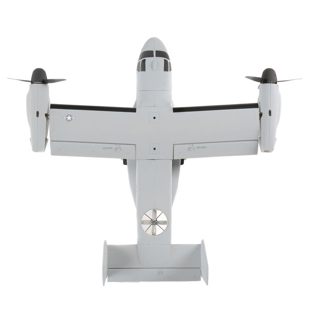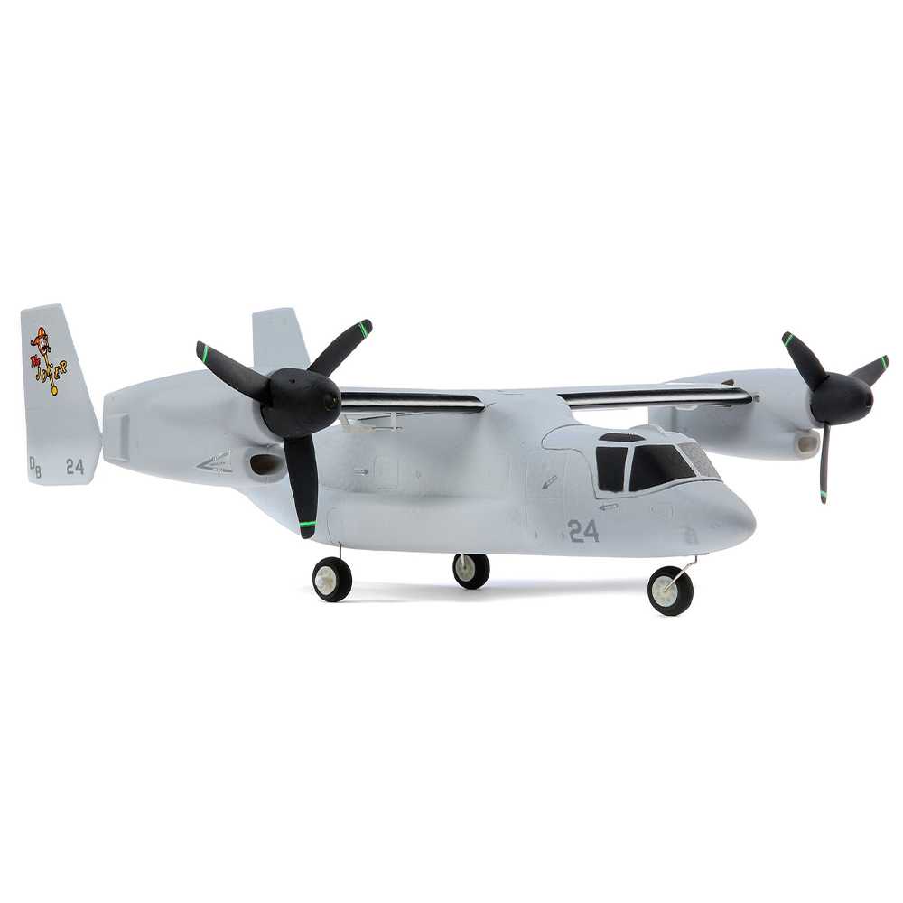 - Best of all you can have the V-22 in the air in almost no time at all! The airframe arrives fully-assembled with a factory-installed flight controller, servos, motors and ESCs (plus a Spektrum™ serial receiver in the BNF Basic version). It's also factory-finished in multicolor paint, and the included decal sheet allows you to customize the finish with multiple military branch trim scheme options. The super-simple transmitter setup only requires assigning one switch for flight mode selection, then you're ready to install a fully charged 3S 11.1V 800mAh LiPo battery (sold separately) to fly. You also have the choice to install the landing gear with a castering nose wheel so you can taxi and perform 'rolling' take offs and landings, or you can leave it off to enjoy the 'retracted' gear look.