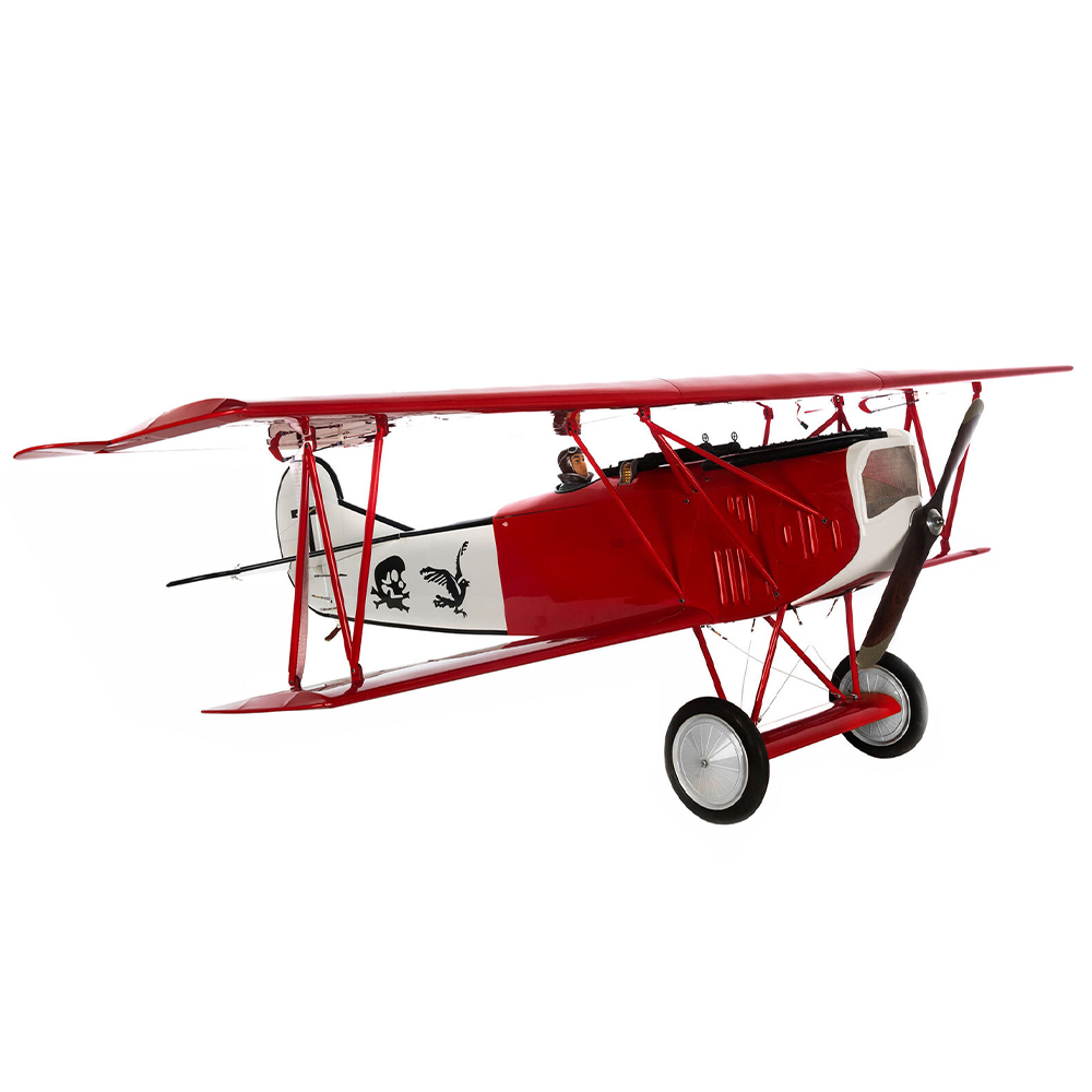 Hangar 9 brings this Great War legend to life as a remarkable giant-scale ARF with scale details to truly do the legendary Fokker D.VII justice. The model has been expertly built to exacting standards utilizing lightweight balsa and plywood. The result is an ARF model that goes together easily with outstanding appearance and friendly flying manners. Even the most discerning modeler will appreciate the exceptional level of details like molded machine guns, scale pilot figure, cockpit details and 8" scale tires, just to name a few. Shock-absorbing main landing gear takes most of the bounce out of grass strips. Genuine UltraCote covering provides an exterior finish that replicates scale-inspired colors with distinction. The Fokker D.VII is designed to accommodate a variety of 30cc to 60cc 2- or 4-stroke gas engines, or brushless electric outrunner motor. All hardware for the recommended power system options is included so assembly is easy and you can get in the air faster. A large top-hatch makes any maintenance and battery changes simple, while providing easy access to electronic components.