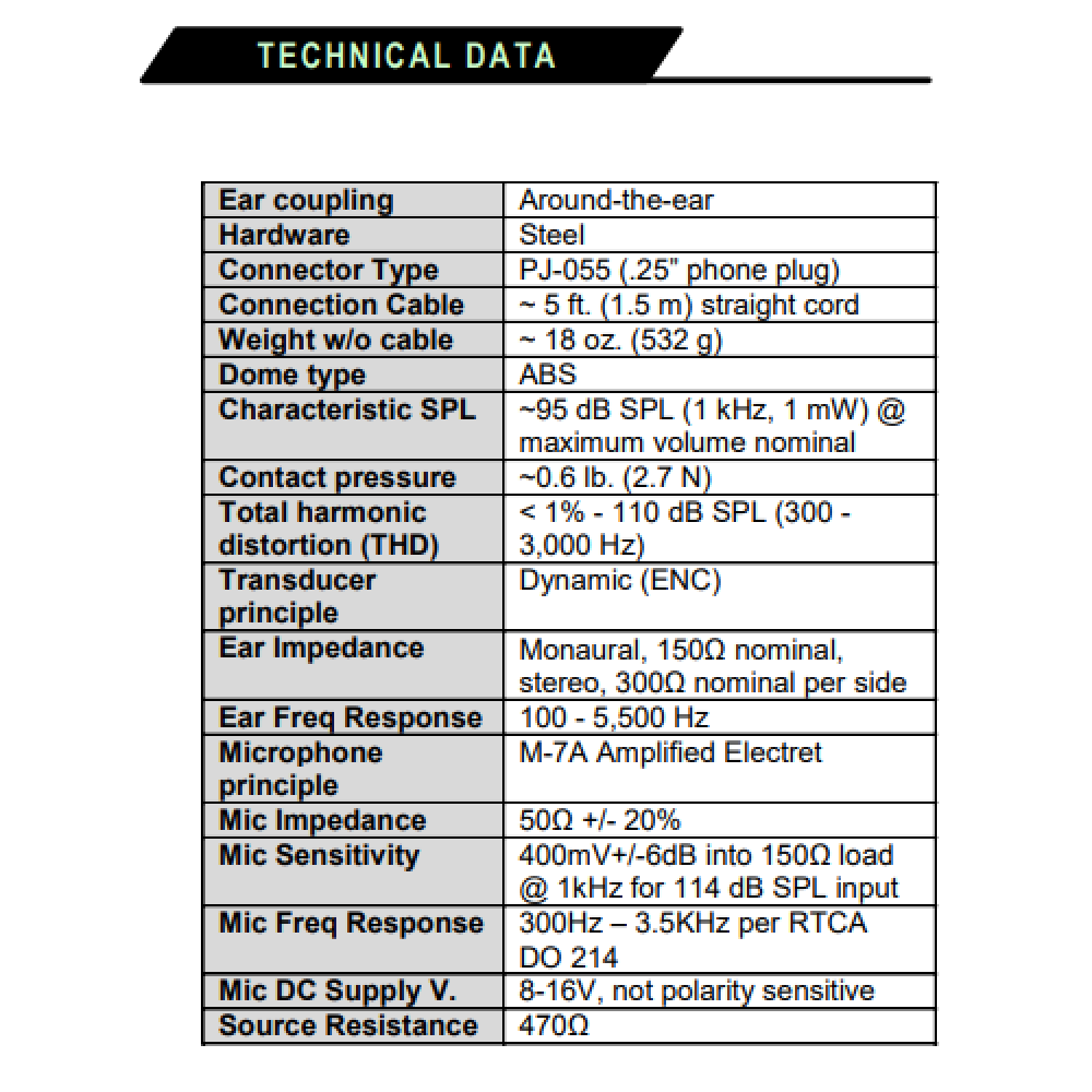 - Stereo compatible for use with stereo intercom and cabin entertainment systems