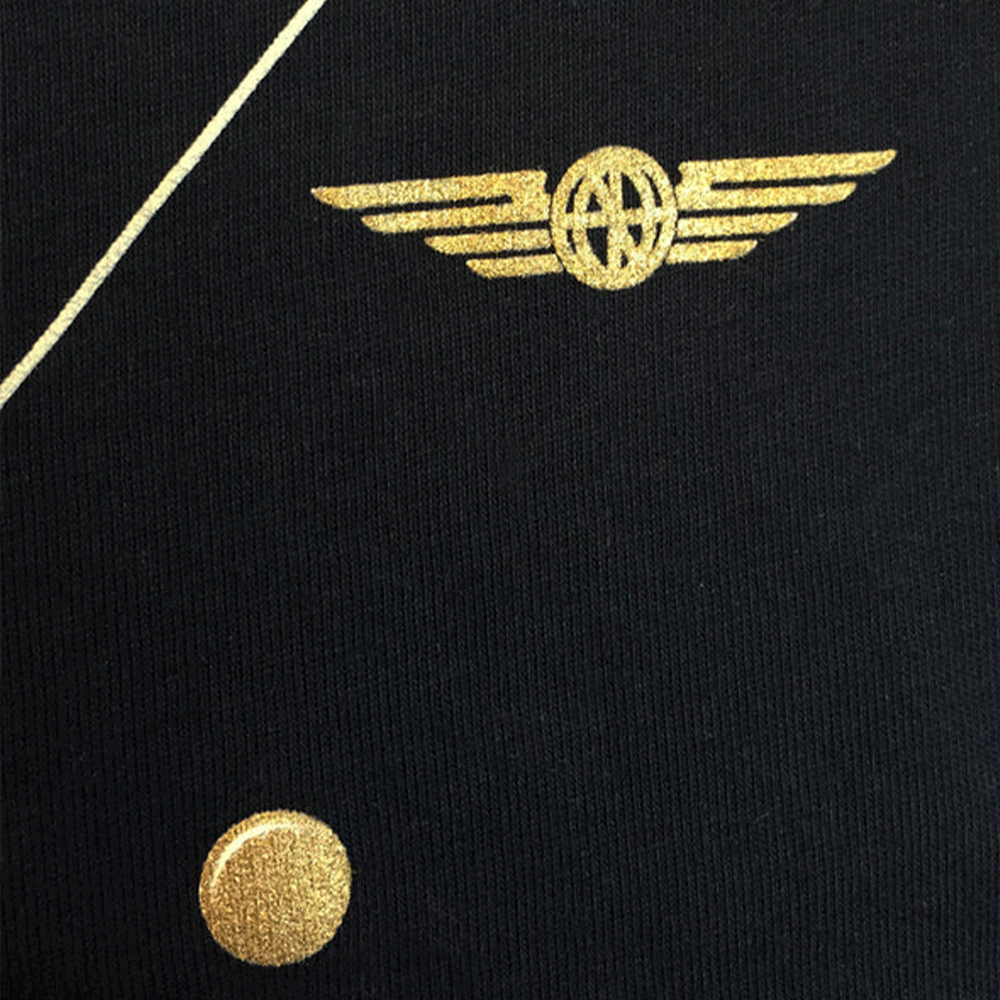 - Lapel wings and jacket buttons are printed with metallic gold ink for added realism.