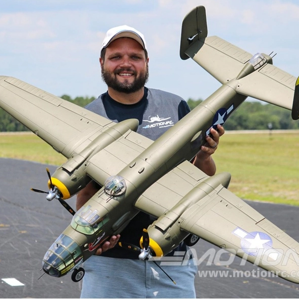 - Motion RC is proud to bring the historic B-25 to the already impressive array of models from FlightLine. This model will satisfy any discerning B-25 aficionados with its fully operational servo-driven bomb doors complete with 4 dummy "bombs" for deployment. The scale CNC-aluminum alloy landing gear with gear doors really compliment the model's scale appeal. The B-25 comes with all digital servos ranging in plastic, hybrid, and metal gear at all the appropriate control surface points.