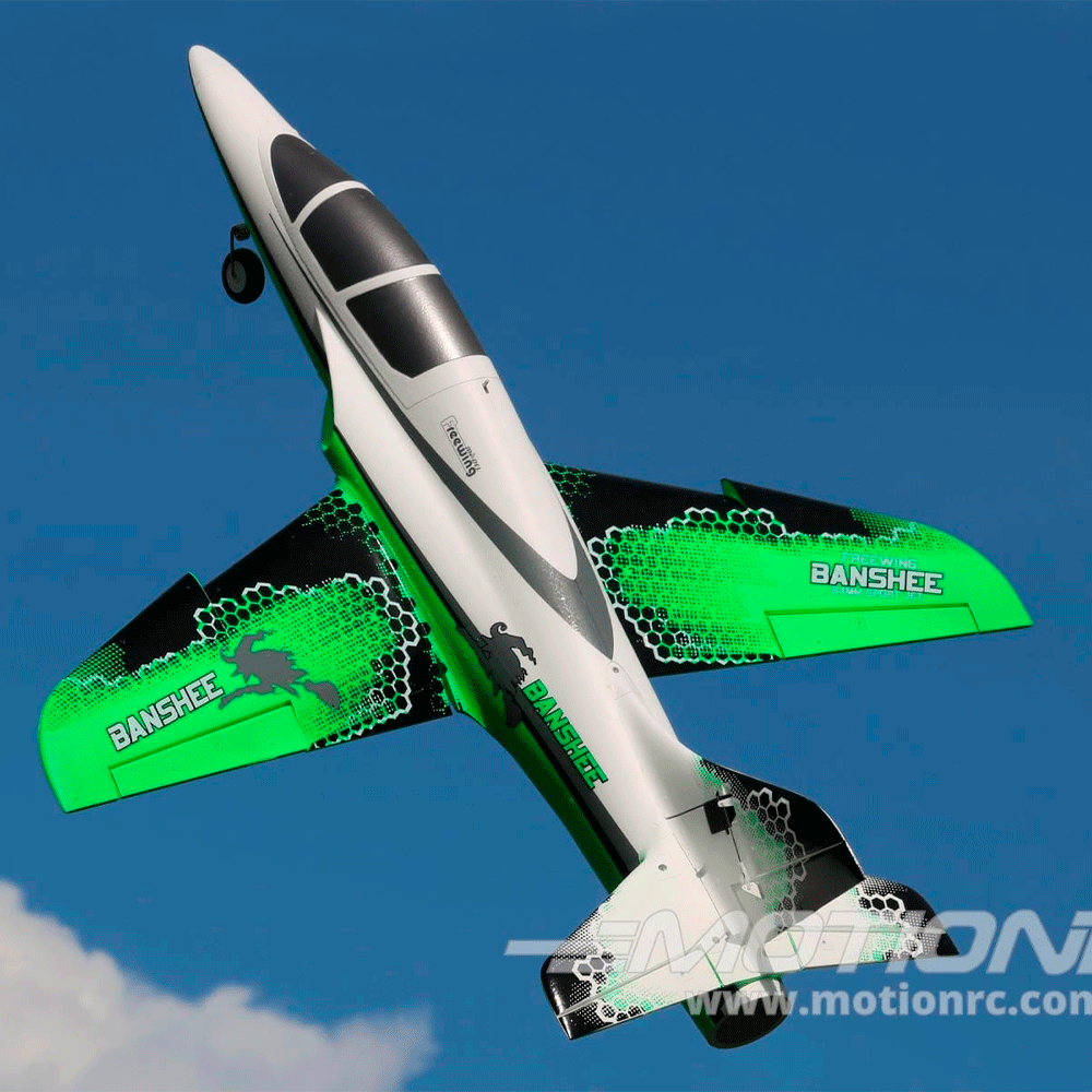 - The Freewing Banshee 64mm EDF Jet is the perfect introductory model for those seeking to break into the thrilling world of foam Electric-Ducted Fan jets. Made with industry-standard and durable EPO foam, the Banshee comes with a 12-blade EDF with a robust 2840-2850Kv outrunner brushless motor for captivating aerial adventures.