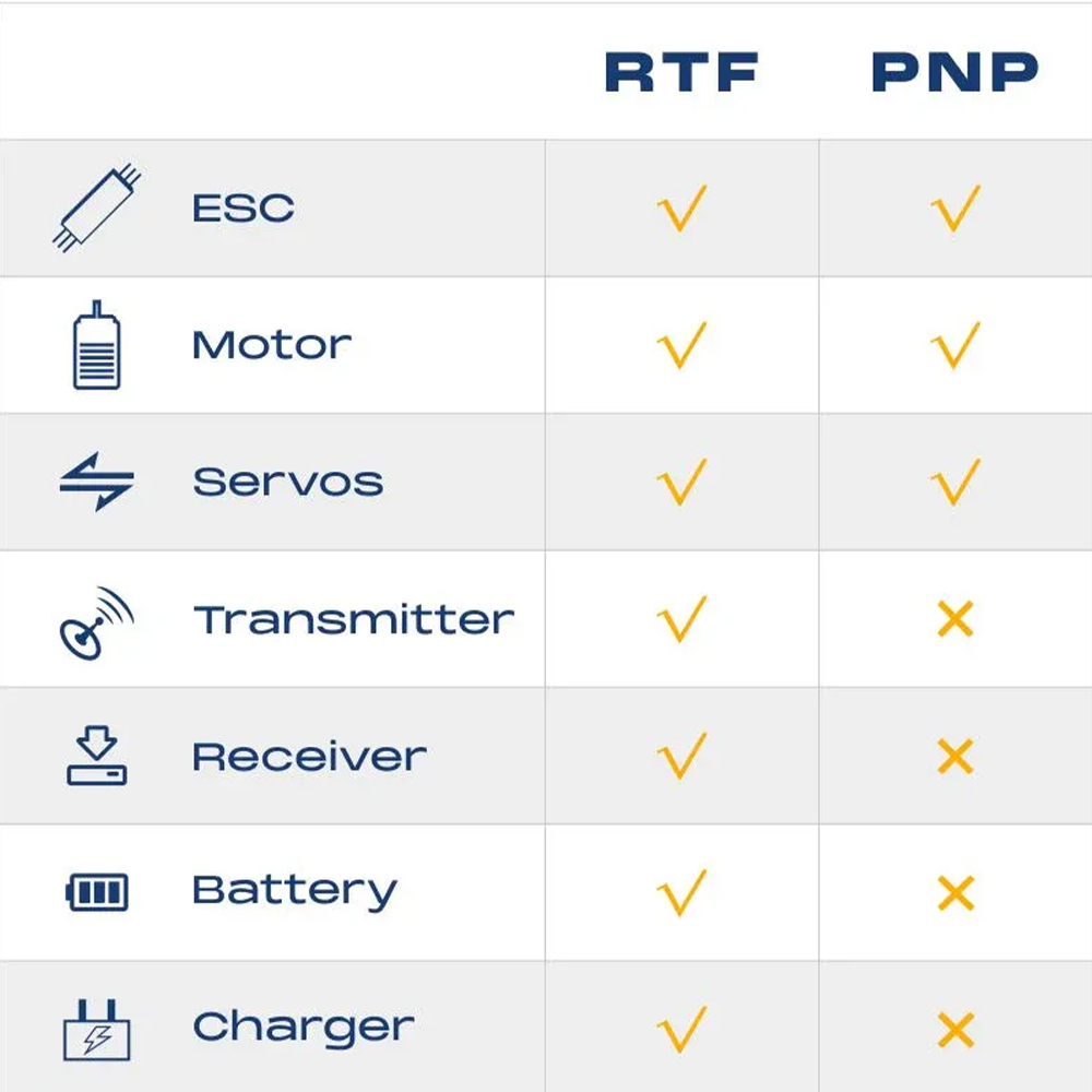 - PNP (Plug and Play) – Motor, servos and ESCs are installed on the plane. Additional radio system, battery and charger are required in order to fly the plane.