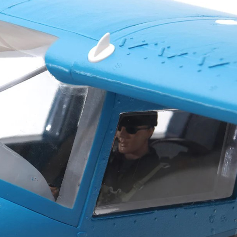 - Scale details: cockpit interior, pilot, molded panel lines, antennas, rivets, vortex generators