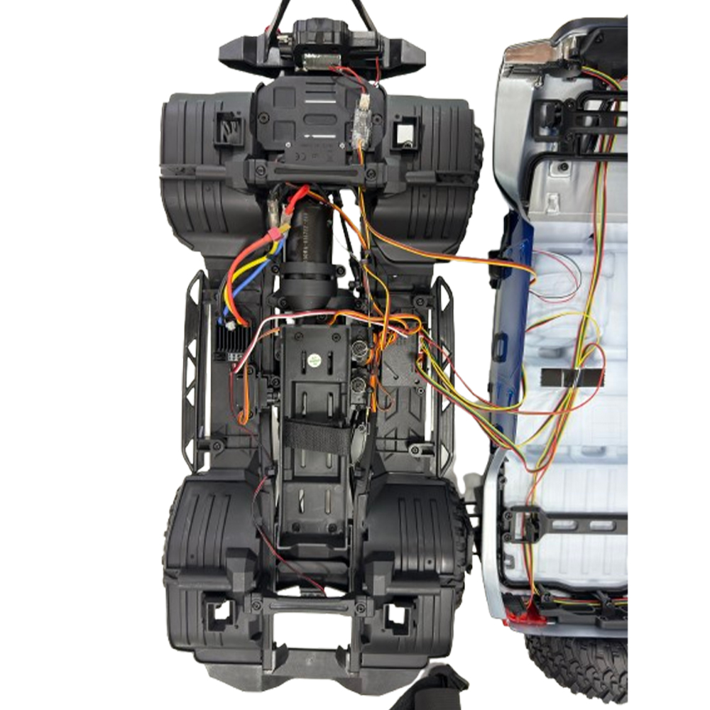 - Forward, backward, turn left, turn right, brake, remote control high and low speed, remote control electric winch. Full simulation structure design, full real car control feeling (remote control).