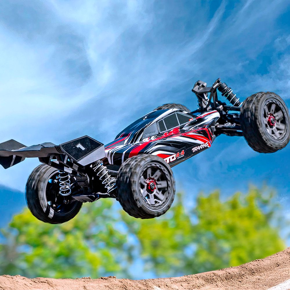 This is Traxxas 1/8 Jato 4X4 Red Brushless 4WD Racing Buggy RTR EP w/ TQ 2.4GHz Radio System. Jato® 4X4 delivers agility and toughness in a platform that is both fun and rewarding to drive. The low-CG chassis uses performance-optimized suspension geometry and optimal weight distribution to deliver quick turn-in and precise handling dynamics. As a result, Jato 4X4 handles with the precision of a race buggy and the durability of the Traxxas' toughest off-road trucks.