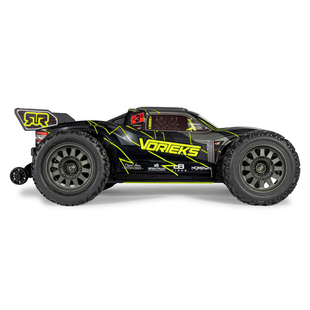 - You can have everything you want in a brushless stadium truck with the 1/10 scale ARRMA VORTEKS 223S BLX 2WD. Straight out of the box, it offers ready-to-run simplicity, attitude-packed styling, the toughness to take hits, and the power to keep going faster as your driving skills grow. Ready for 2S or 3S power, this basher delivers premium performance — at a price you can afford.