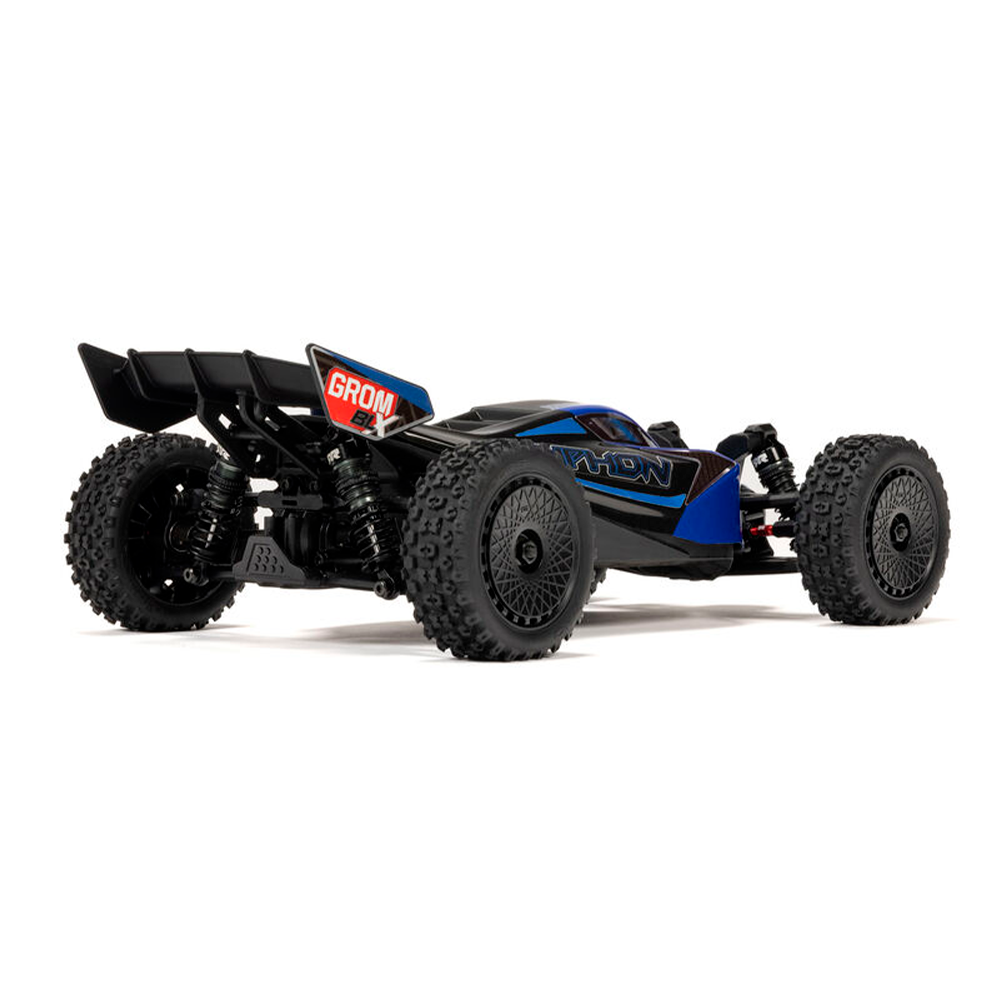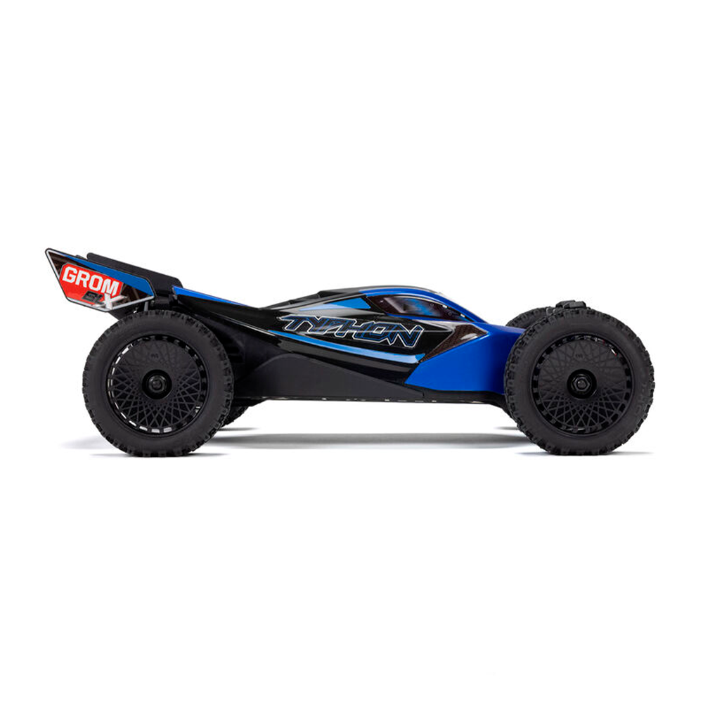- ARRMA raised the performance of low-cost, small-scale RC buggies to the next level with the fast, tough TYPHON GROM. Agile and responsive like the 1/8 scale TYPHON, the little GROM goes places that bigger buggies can't, allowing anyone to enjoy amped-up ARRMA bashing almost anywhere. Now ARRMA introduces the brushless TYPHON GROM 223S BLX – and for new drivers who have big plans for the future, it's the best choice of basher to grow on.