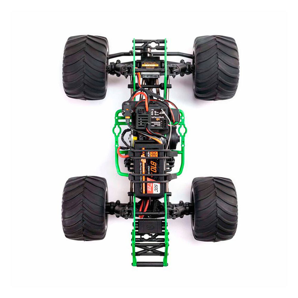 Losi Mini LMT 4WD monster truck comes factory-built and finished, with everything required for operation in the box — including a high-quality Spektrum SLT2 radio for interference-free 2.4GHz control, and a high-capacity Spektrum Smart LiPo battery and charger for long run times and effortless recharging.