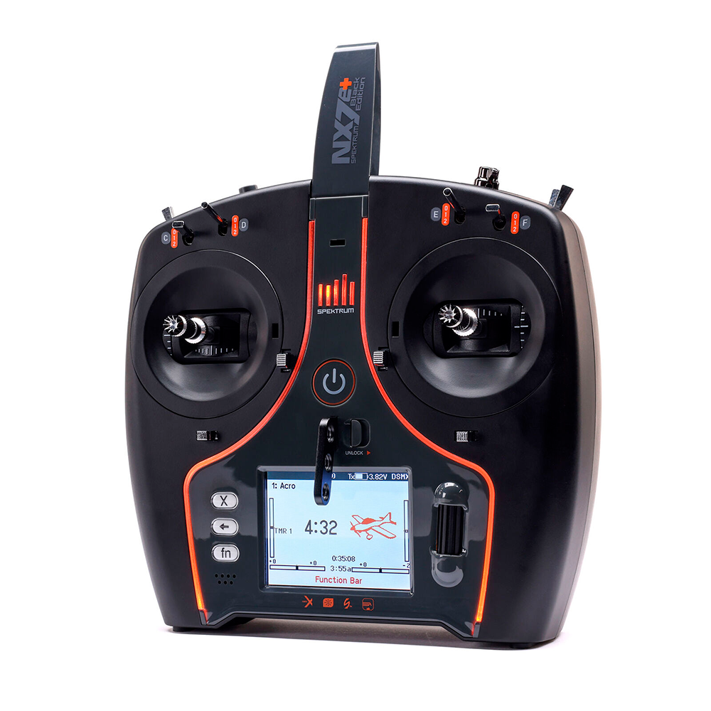 For the beginner to intermediate, BNF-type, and budget-conscious RC pilot, the Spektrum™ NX7e+ Black Edition gives you the unbeatable response of DSMX® technology, the simplicity of Spektrum AirWare™ programming software, and many other features you can’t find on other similarly priced radios. To all this, it adds a stunning, black finish that further sets it apart from everything else in its class.