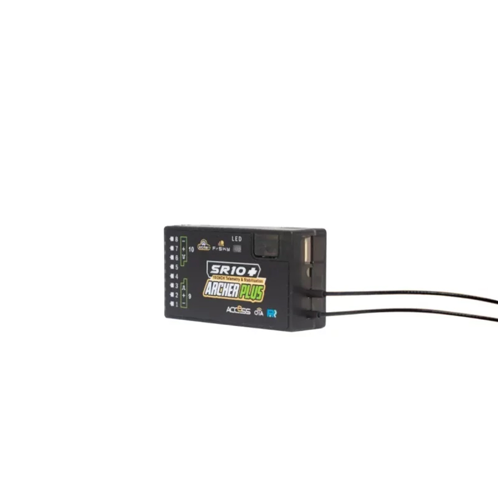 - The Archer Plus SR10+ are gyro-stabilized receivers with a built-in 3-axis gyroscope and 3-axis accelerometer and feature multiple flight modes (Auto-level, Stabilization, Knife-Edge, etc.) and configuration methods. The SR10+ receivers have 10 configurable channel ports, each channel port can be assigned as PWM, SBUS, FBUS, or S.Port.