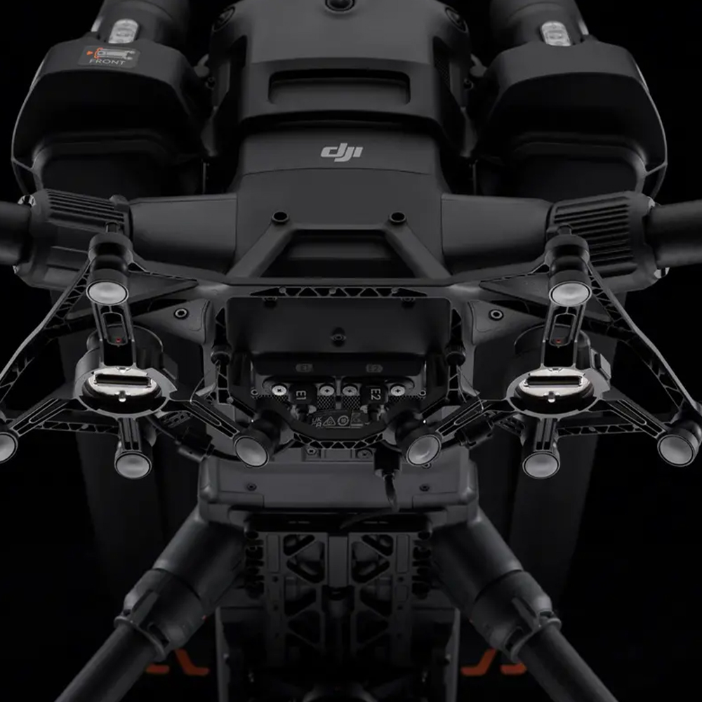 - After connecting to the E1 or E2 port of the E-Port V2, dual gimbal mounting is supported, allowing payloads to be mounted beneath the nose of DJI Matrice 400.