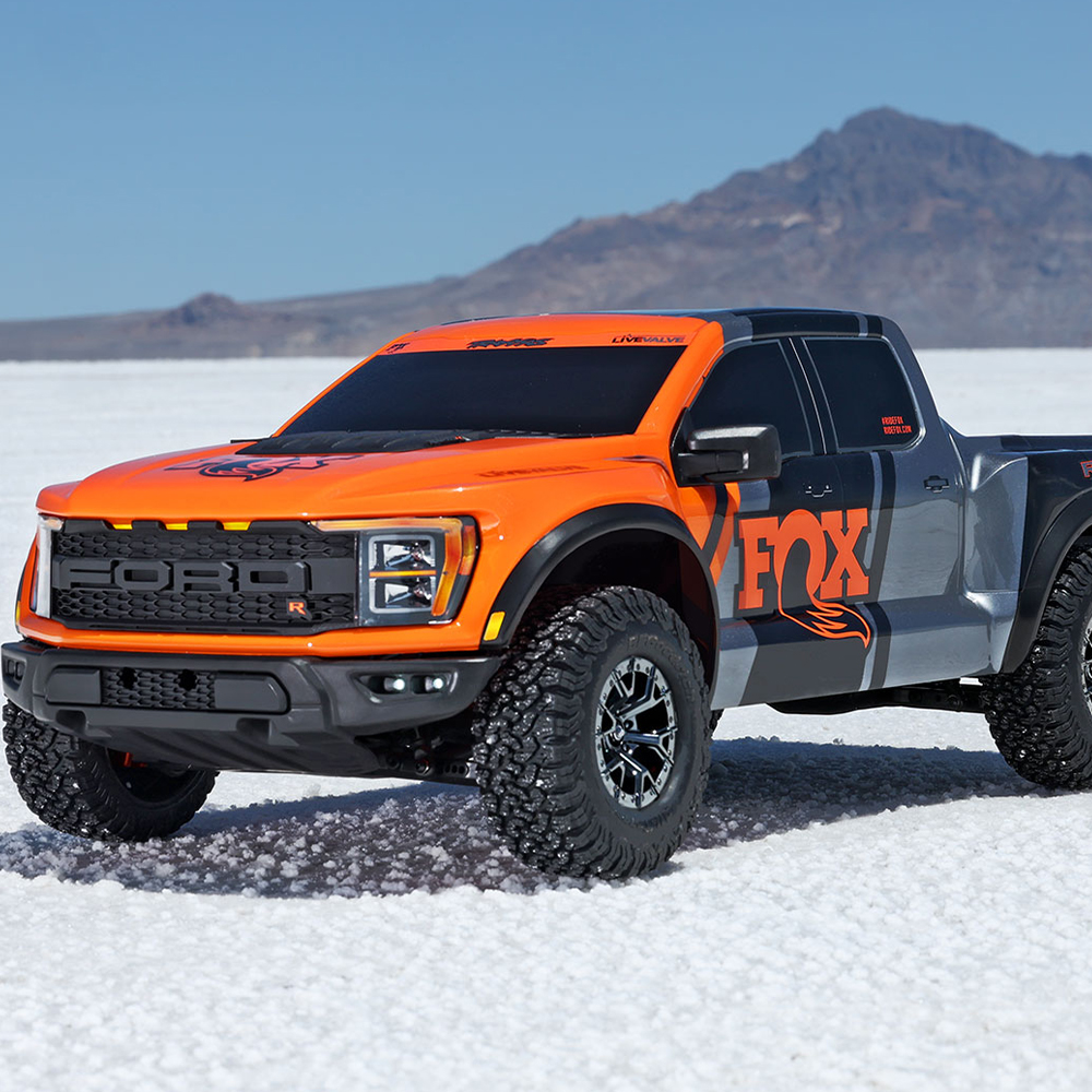 - The officially licensed Ford® F-150® Raptor R™ Pro Scale® body brings unmatched realism with molded scale details including bumpers, grille, hood vent, and side mirrors. LED lighting in the front and rear bumpers adds extra visual impact, while a reinforced clipless mounting system provides a clean look and quick access with no posts or body clips.