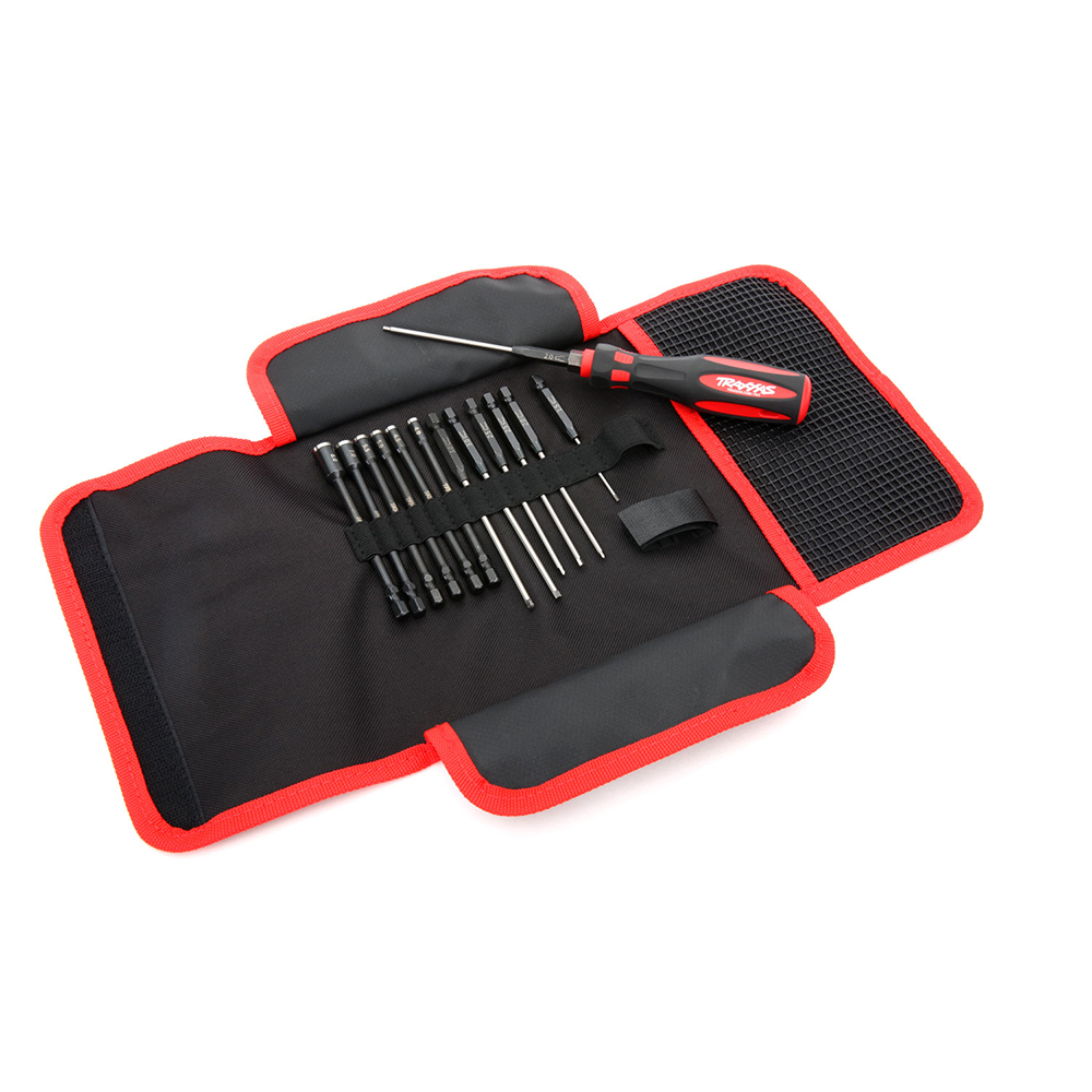 Traxxas premium tool kits are manufactured from exceptionally high quality materials to provide years of pro-level service. Precision-ground, hardened-steel hex tips fit just right, to prevent wear, rounding, and screw damage. Designed specifically for Traxxas models, these speed bit sets come in a tough, compact pouch making them ideal to take along for service in the field.