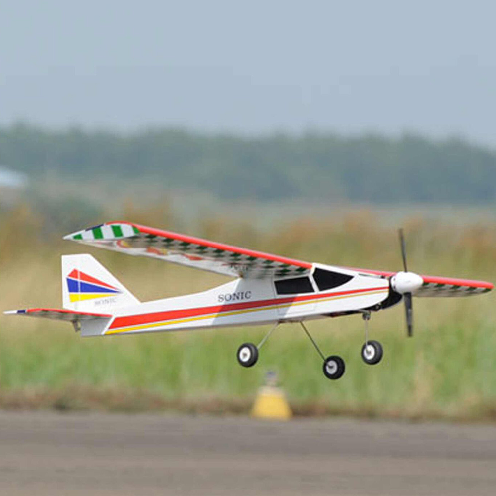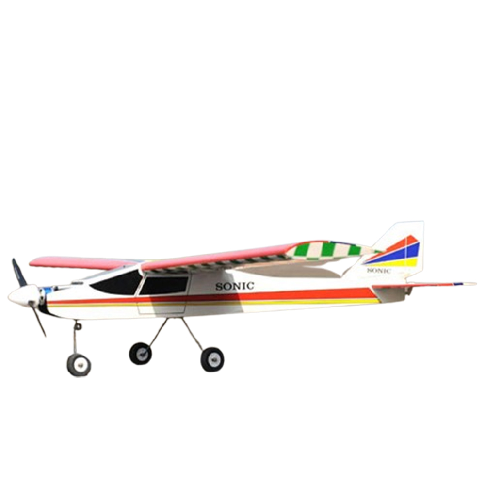The Sonic high wing offers semi-symmetrical maneuverability, making it the highest-quality, easiest-starting and easiest-to-fly trainer in its class. The Sonic high wing is expertly handcrafted from balsa and plywood using only epoxy and CA glues. You can fly this plane after 1-2 hours of installation. All the hardware are included (servo wire, fuel tank, wheel/landing gear, etc). You only need to separately purchase the nitro engine and radio system.